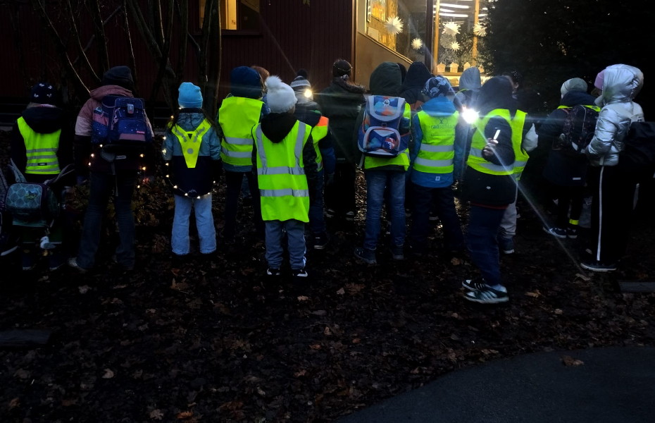 Sichtbarkeit im Straßenverkehr! Zum Glühwürmchentag am 02.12.2025 verwandelten sich die Kinder unserer Schule in leuchtende "Glühwürmchen"